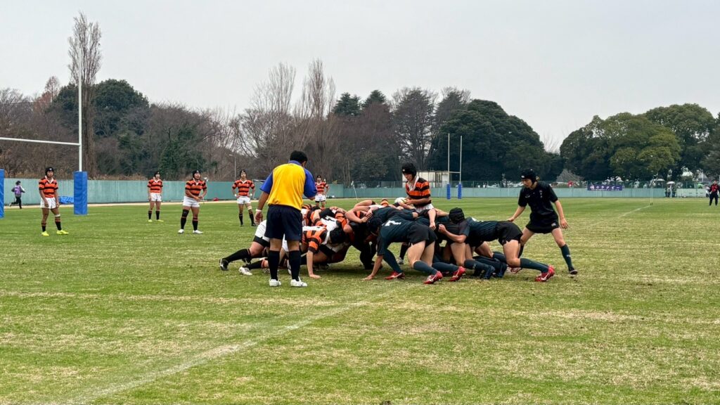 前半は、攻守がめまぐるしく入れ替わる、拮抗した試合となりました💦相手に端のスペースを使われて抜かれ、そのままトライを許す展開が目立ち、トイメンを確認しろという声が何度も飛んでいました。ラックの集散にやや時間がかかり、ボールを継続出来ても最後まで取り切れず、好機を得点に結びつけられないもどかしい場面も。それでも、チームトークでは終始明るい声掛けが多く、ミスの後も切り替えが早かった点は印象的でした☺️雰囲気が沈むことなく、前向きな空気のまま試合を進められていたと思います。